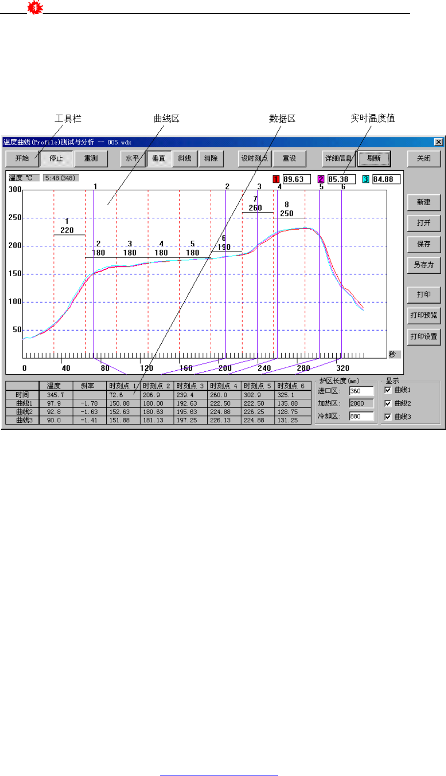 5.4.1 温度曲线测试窗口组成
