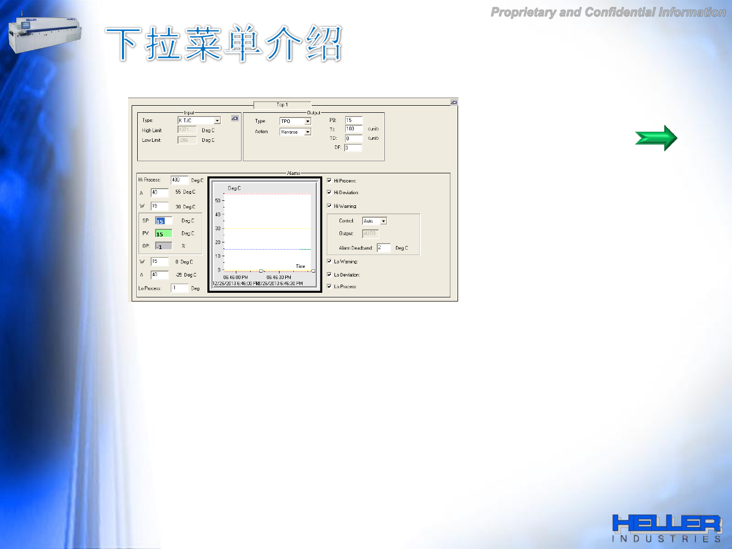 中央图示 : 红线―――警告值设定 蓝色―――SP设定值