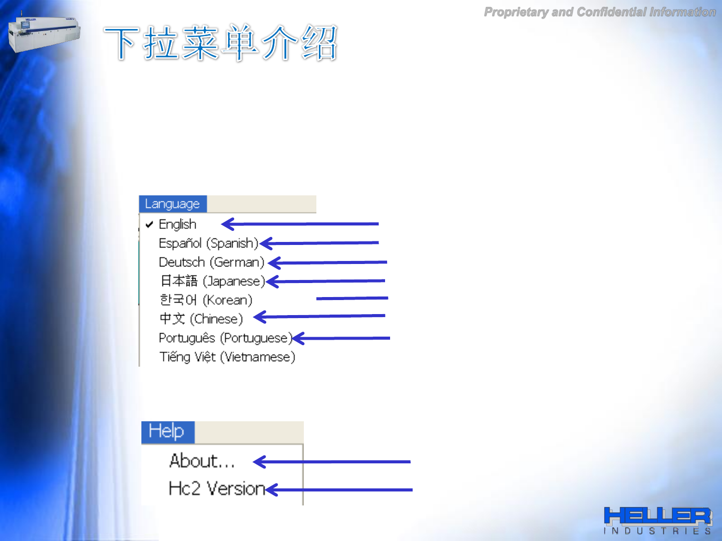 Proprietary and Confidential Information 5.2, 报 警和 日志 报 警和日志 记录 的存 档 名 称 是以日期自 动产 生 , 存 储 路 径为 : C: \Ov en\J our nal Files 此路 径 下存 储 Da ta 和 Ev ent 文件 6, 语 言 英 语 西班牙 语 德 语 日 语 韩语 中文 葡萄牙 语 7, 帮 助 软 件版本 HC2 版本 ( 如果是 HC1 的 …