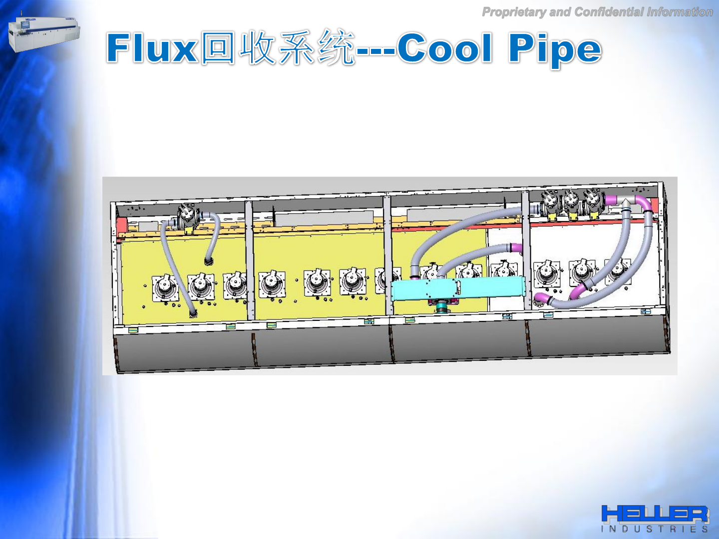 Proprietary and Confidential Information 下面 Cool Pipe 的各部件和 Cool Pipe 的工作流程。 冷却水流 经 Coil 管子 , 冷却 Coil 管壁 , 从炉膛 中抽出 来 的 气 体 , 经过 Cool Pipe 组 件的外管 , 当热气 和 Coil 接 触时 , 气 体被冷却 ,Flux 也被凝 结 在 Coil 壁上 .