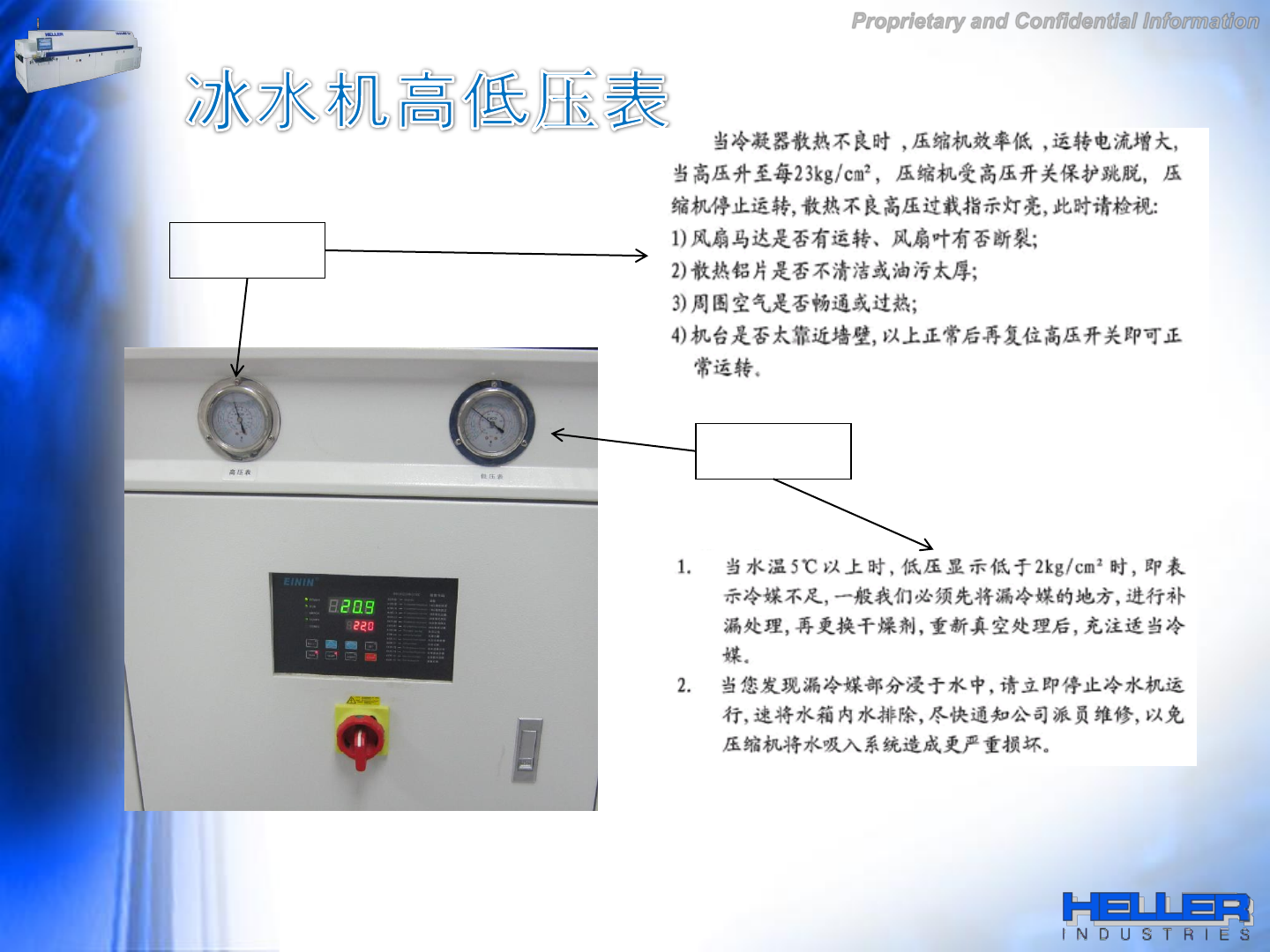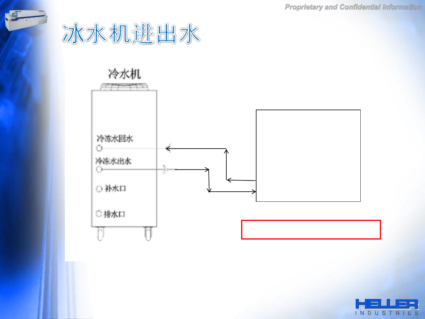 Proprietary and Confidential Information O VEN 冷水机的回水接到 O VEN 的出水口 ; 冷水机的出水接 到 O VEN 的 进 水口 . O VEN 水 压 不小于 3K G