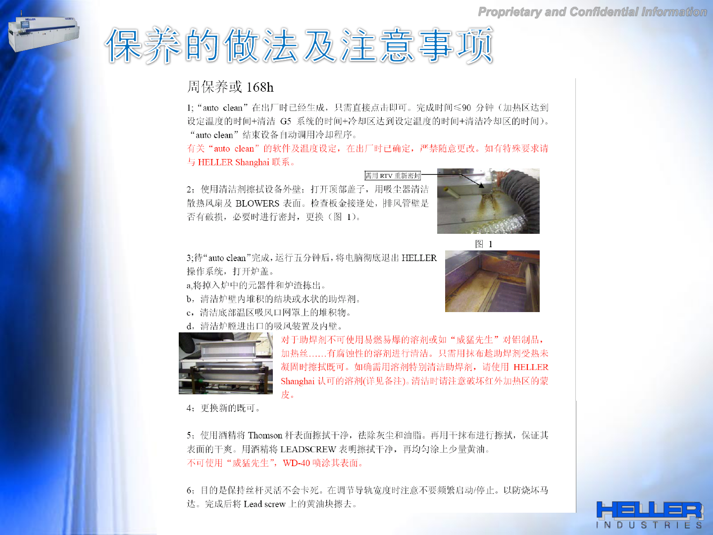 以上保养内容根据一般SMT制程而定,如有特殊制程请与HELLER