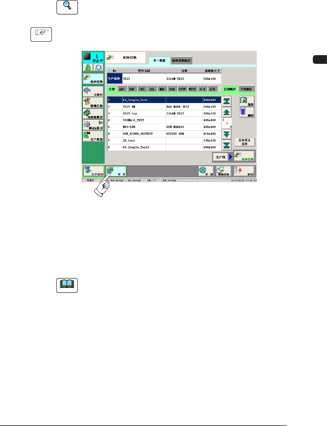 进行生产机种的切换。