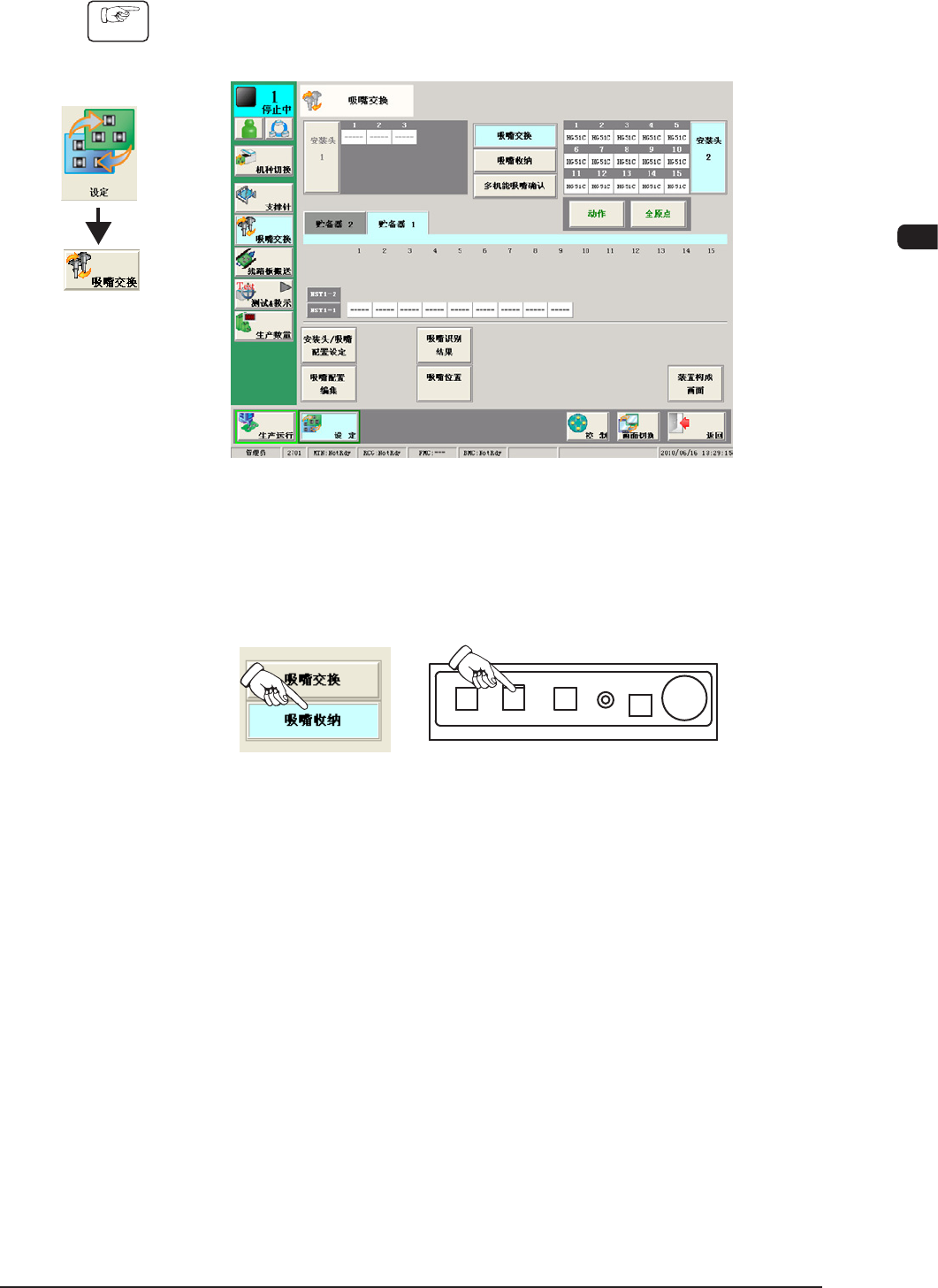 (2) 按下 [ 吸嘴收纳 ] 按钮。