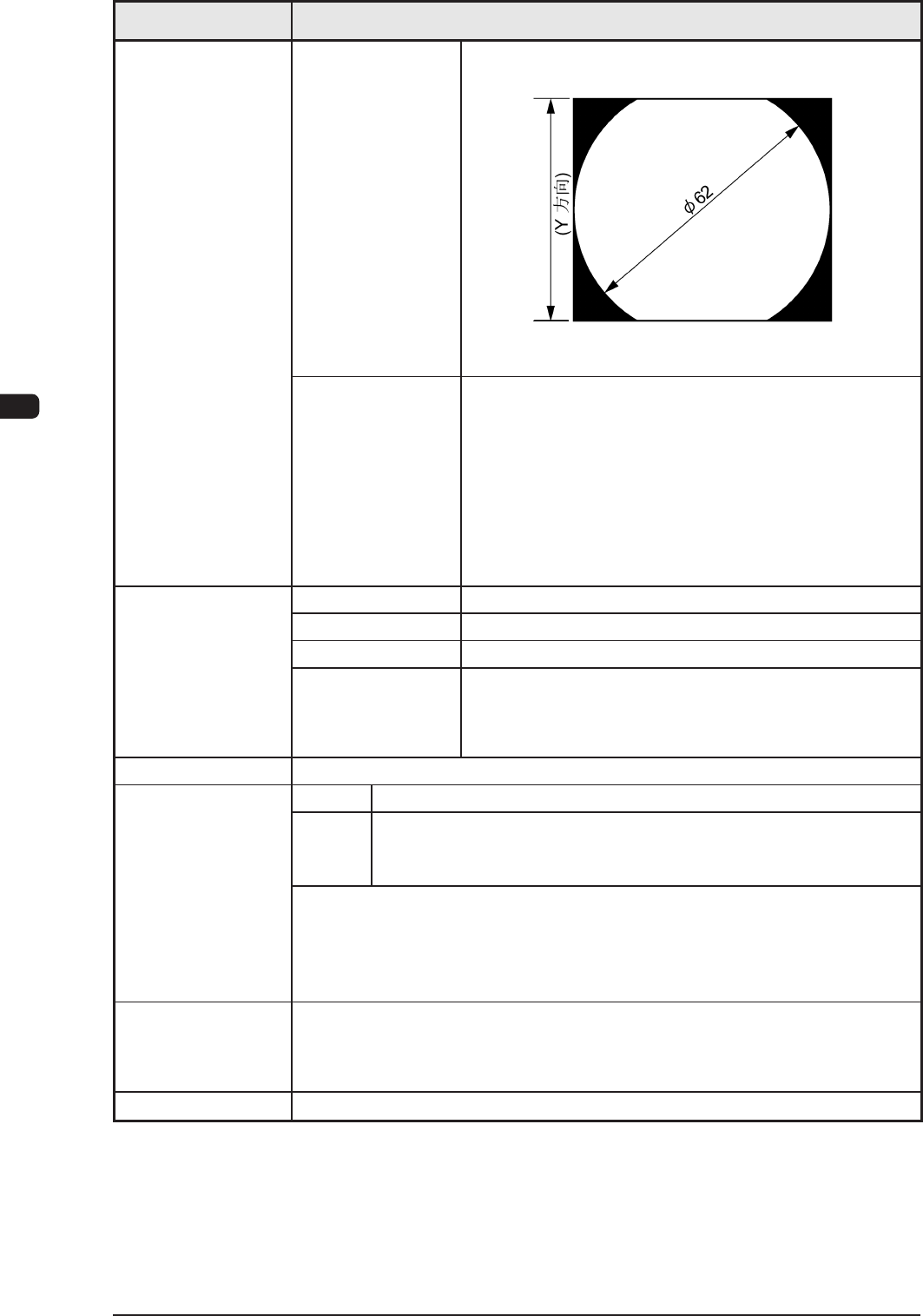 1OM-1602 4-8 第四章 1. 规 格 项 目 内 容 18. 元件识别 视 野 φ 62mm 但是,Y 方向为 46.7mm。 46.7 单位 : mm F1E10 摄 像 反射光方式 ( 通过反射光直接识别元件 ) 注 : 根据不同元件有所限制。 透过光方式 ( 用元件轮廓识别 ) 注 : 根据不同元件有所限制。 透过光方式只限于用在中异形吸嘴以及多功能安装头 的多功能吸嘴的专用吸嘴对应。 透过方式为停止摄像。 19. …