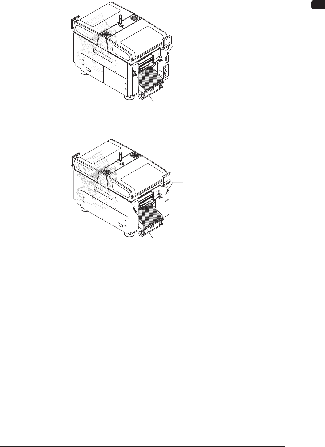 1OM-1602 第一章 2. 各部分的名称和功能 1-7 1 103-003 2.2.2 送料器准备完了开关以及机盖锁定开关 机盖锁定开关 [机盖READY]按钮) 送料器准备完了开关 ([F2 READY]按钮) 装置正面 装置背面 机盖锁定开关 ([机盖READY]按钮) 送料器准备完了开关 ([F1 READY]按钮) F1A5