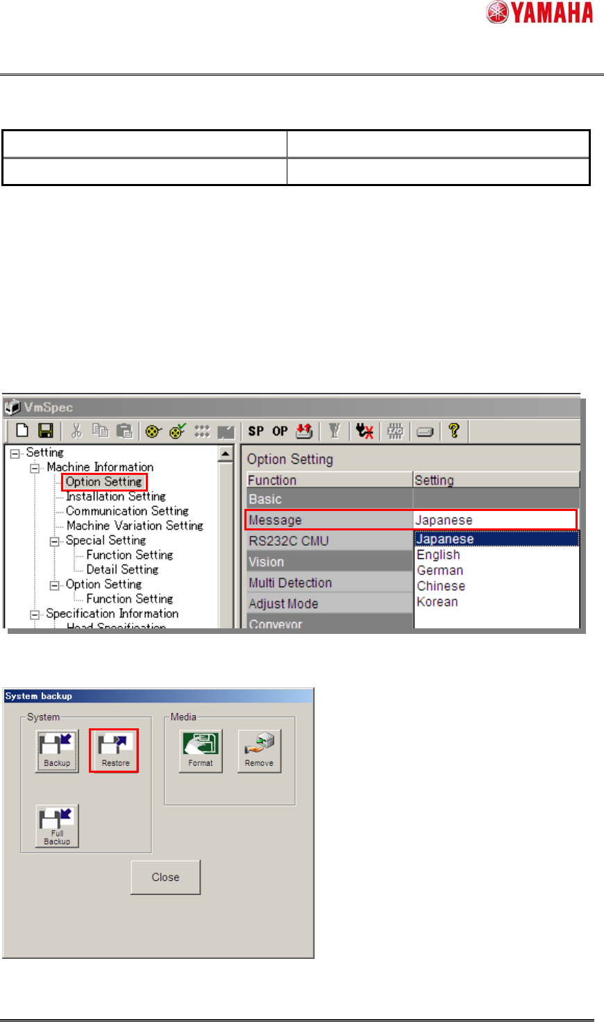 SMT Software Engineering Group IM Opera tions YAMAHA M OTOR CO., LTD. MDOC-SOFT5011 1 The Pro cedure o f Sys tem S oftware I nstall Y AMAHA EN GLISH . 12/16 YSM Series List 3.10 YSM Series Default Language Language set E…