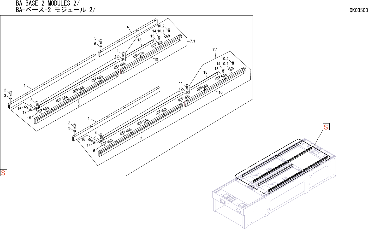 BA-BASE-2 MODULES 1/8 BA-ベース-2 モジュール 1/8 QK03503 番号 図番 & コード番号 個数 品名 規格 材質 備考 No. Drg.No. & Code No. QTY Description Rating Materials Remarks 94 W1012A 16 WASHER, CONICAL ワッシャ 皿 M-5-L FE 95 PT00160 4 GUIDE ガイド F…