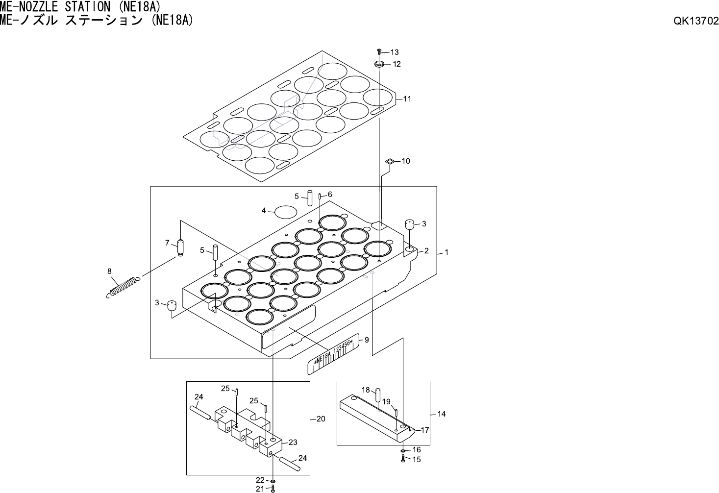 ME-NOZZLE STATION (NE18A) ME- ノズル ステーション (NE18A) QK13702 No. Drg.No. & Code No. QTY Description Rating Materials Remark 番号 図番 & コード番号 個数 品名 規格 材質 備考 1 AA0AG02 1 HOLDER ホルダ OT 2 PM40222 1 HOLDER ホルダ AL 3 PM35032 …