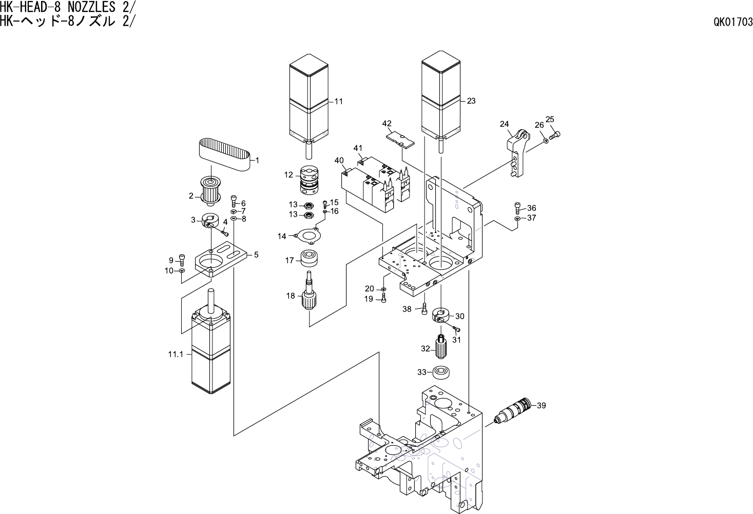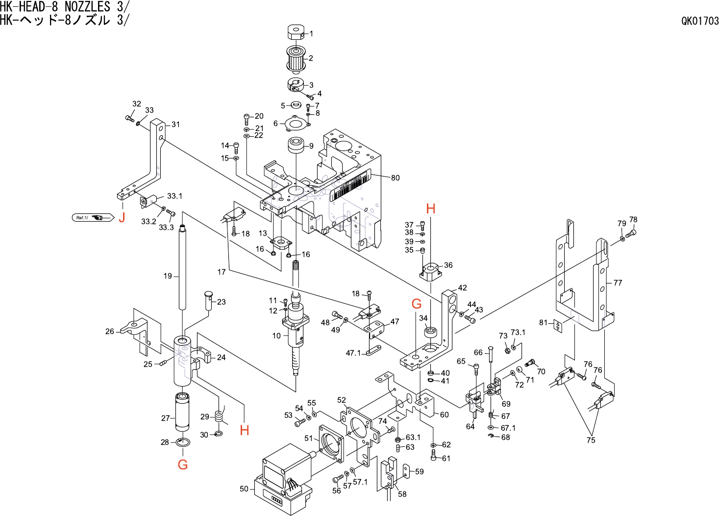 HK-HEAD-8 NOZZELS 2/ HK-ヘッド-8ノズル 2/ QK01703 番号 図番 & コード番号 個数 品名 規格 材質 備考 No. Drg.No. & Code No. QTY Description Rating Materials Remarks 1 H45713 1 BELT, TIMING ベルト タイミング 110-2GT-12 OT 2 XP00521 1 PULLEY プーリ OT …