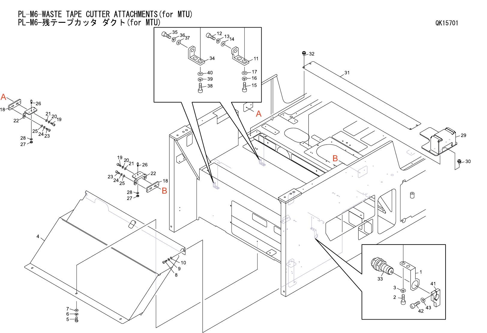 PL-M6-残テープカッタ ダクト(for MTU) QK15701