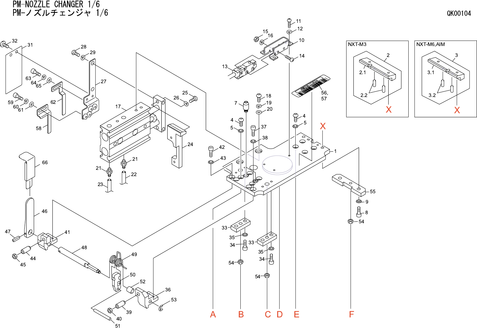 PM-NOZZLE CHANGER 1/6 PM-ノズルチェンジャ 1/6 QK00104 番号 図番 & コード番号 個数 品名 規格 材質 備考 No. Drg.No. & Code No. QTY Description Rating Materials Remarks 1 PM27943 1 PLATE, UPPER プレート 上 FE 2 AA57303 1 GUIDE ガイド OT NXT-M3 2.1 P…