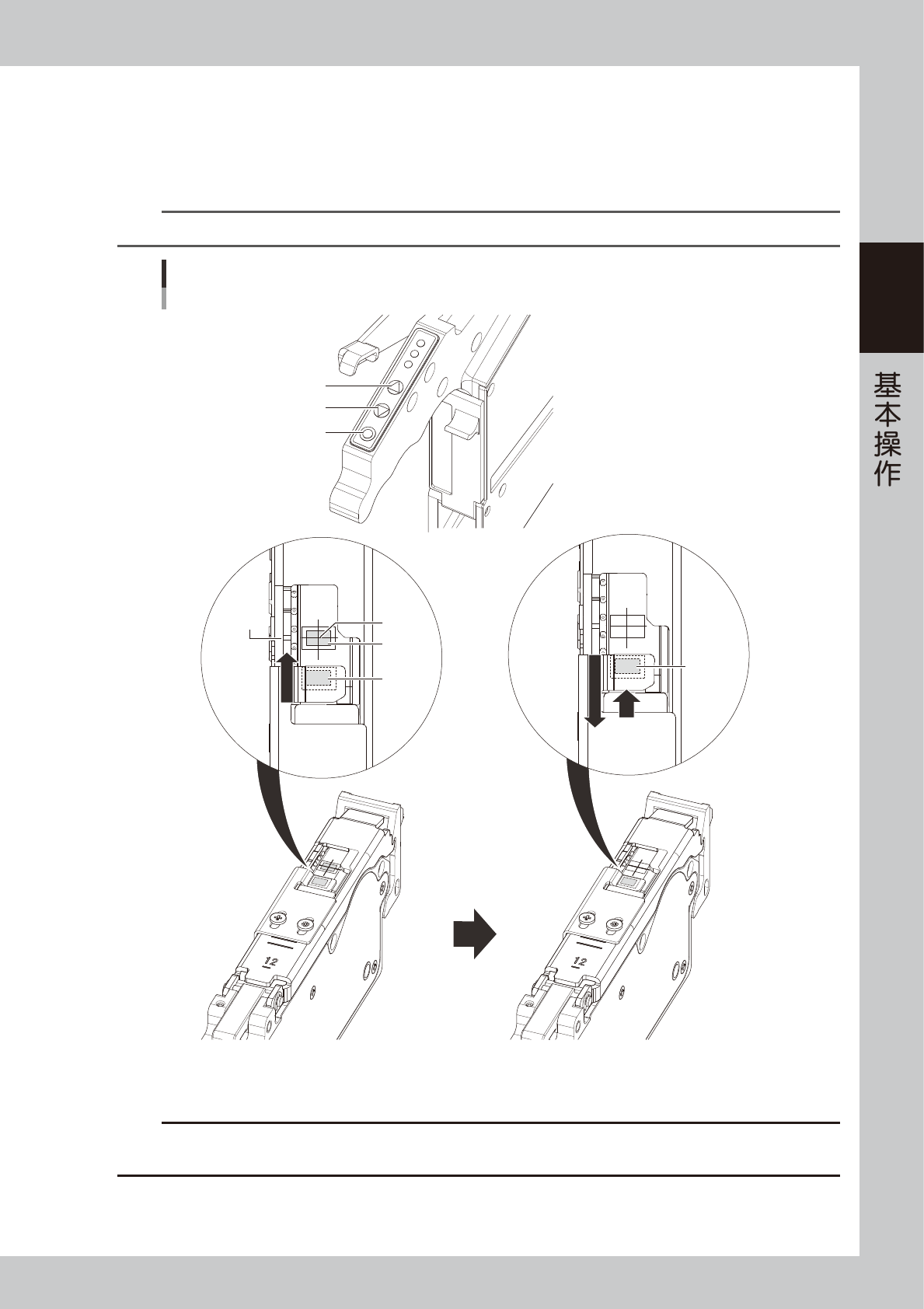 12mm、16mm、24mm 送料器时,盖带也可以不必穿过压料盖的切口部,如 32mm 以上的送料器一样穿过压料盖的压料板前端