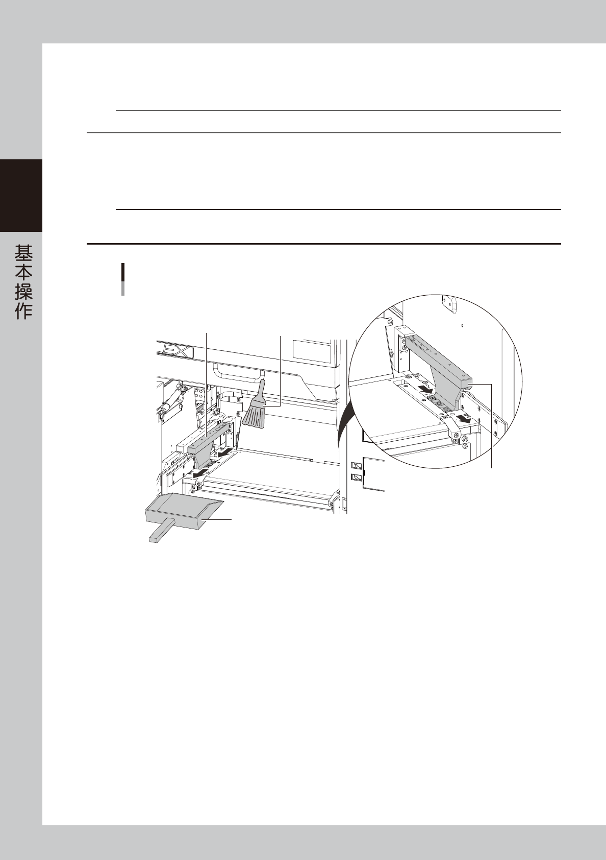 使用随机附带的软刷或家用吸尘器 ( 或选购件吸尘工具 ) 清除料车夹固部上的尘屑或异物。