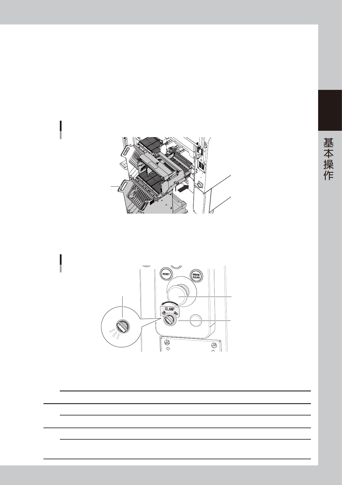 将与料车安装位置对应的料车夹固开关向左旋至“ON ( 夹固 )”,料车夹固开关的指示器开始闪烁。