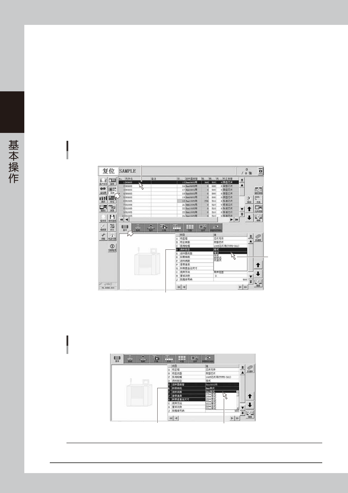 带装元件无需设定“送料器类型”参数。