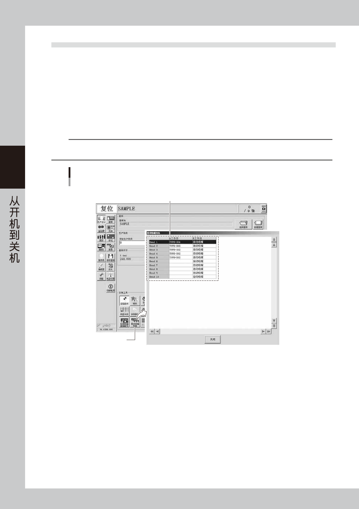 求吸嘴列表”画面中显示为“自动吸嘴”。
