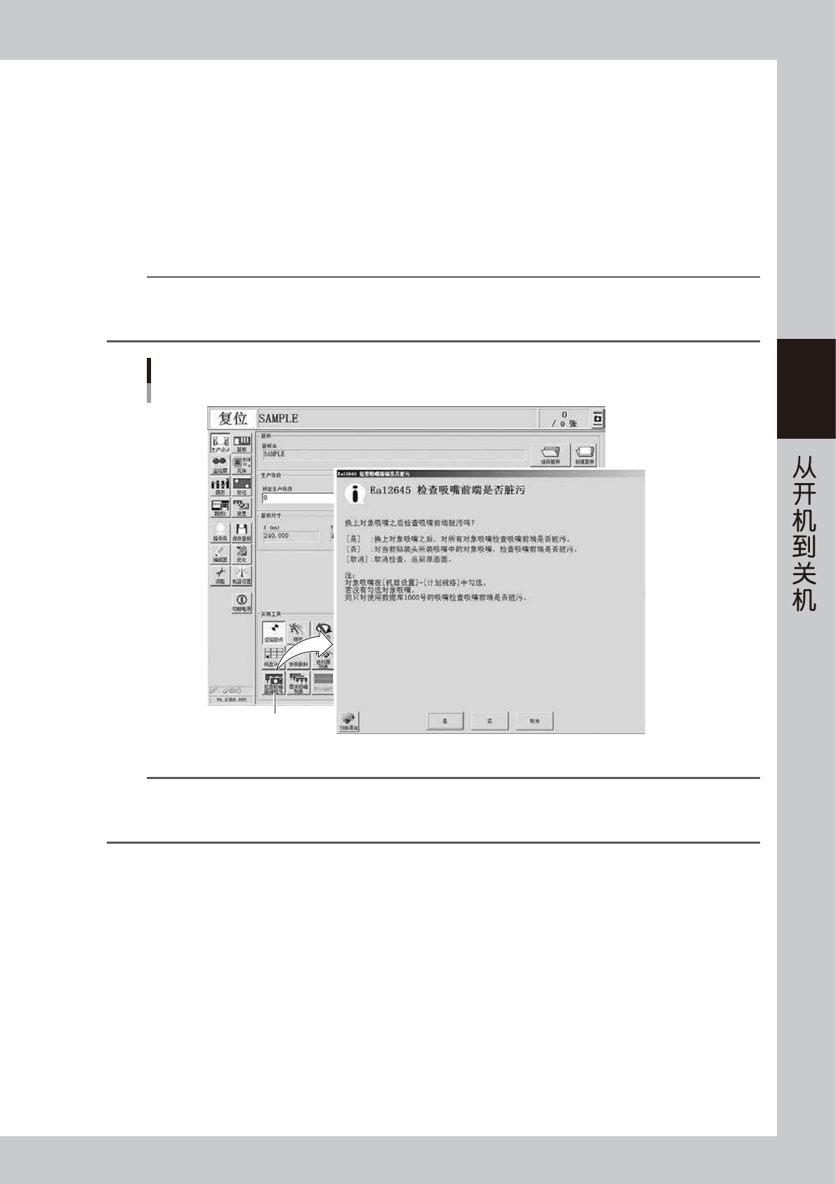 [ 是 ] :自动更换吸嘴并对所有检查对象的吸嘴检查前端是否脏污。