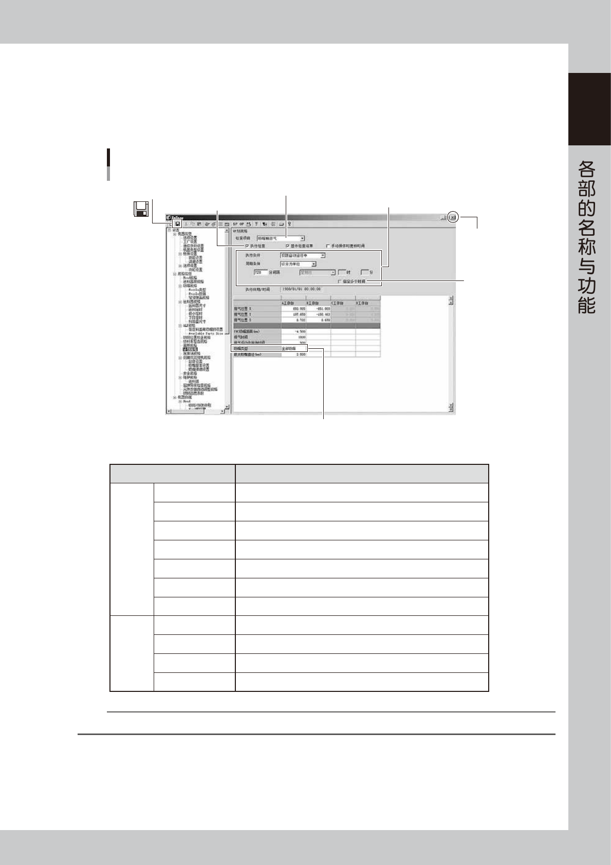 1-20 1 3.4.3 自动进行吸嘴轴排气的方法 本机可以使吸嘴轴在任意时间自动进行排气清洁。 下面,介绍设置方法。 1 按 [ 机器设置 ] 按钮。 打开“VmSpec”画面。 2 从树形菜单中选择“计划规格” 。 从树形菜单的“设置”-“规格信息”下选择“计划规格” ,打开“计划规格”画面。 n 要点 计划规格画面的设置需要有管理员权限。 打开“计划规格”画面 [机器设置] 按钮 选择“计划规格” “VmSpec”画面 26105…