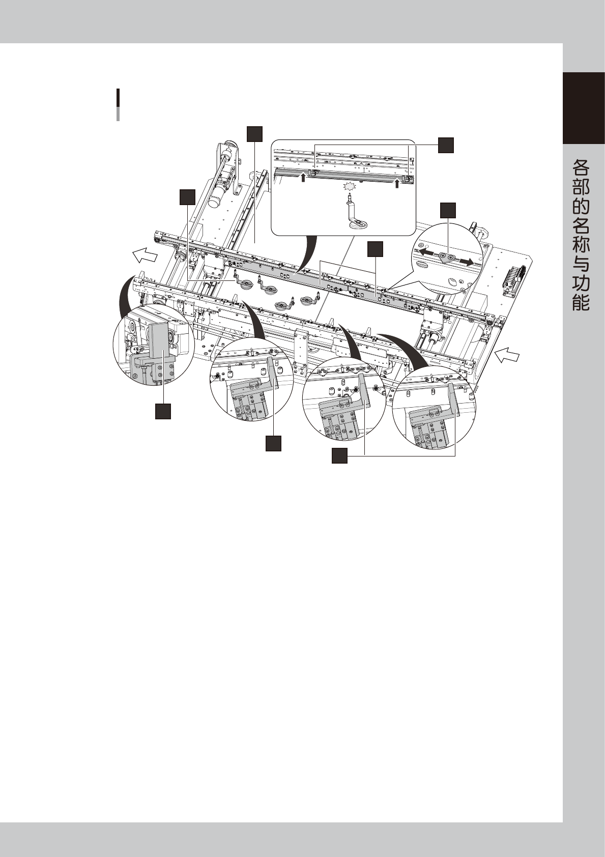 1-43 1 ■ YSM20WR 单轨机型 ( 传送重型基板规格 ) 6 1 4 7 8 5 2 3 传送装置 以右→左传送基板为例 传板方向 25147-KMK-00 1. 待机挡板 贴装位置上已有基板时,被传送到传送装置内的基板在待机挡板位置处待机。 待机挡板有 2 处,根据基板尺寸不同切换使用。 2. 主挡板 贴装位置的基板挡板。传入传送装置内的基板碰到主挡板就会停在贴装位置。 单轨机型只有 1 个主挡板。 3. 出口挡板…