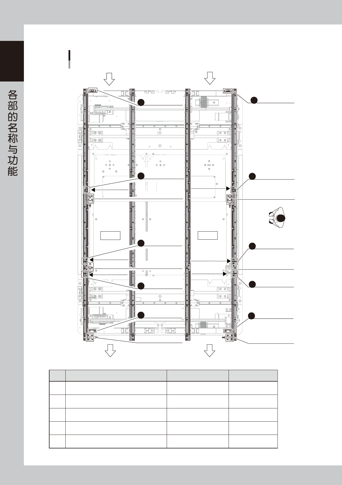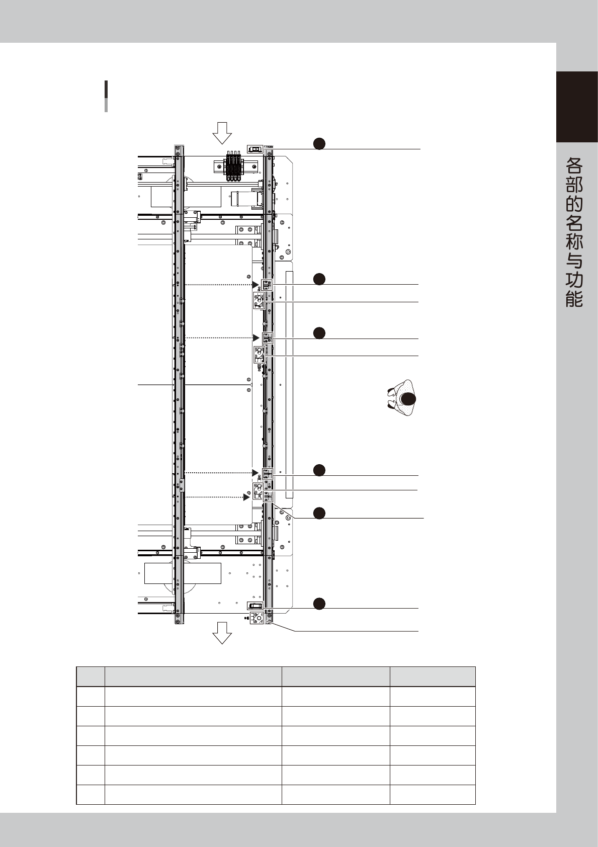 1-47 1 ■ YSM20R 单轨 L=510mm 机型 YSM20R 传送部传感器的安装位置 以右→左传送基板为例 传板方向 入口传送轨 基板检出传感器 待机位置 基板检出传感器 2 待机位置挡板 2 待机位置 基板检出传感器 1 待机位置挡板 1 主挡板 贴装位置 基板检出传感器 贴装工作区超出 检出传感器 1 出口位置 基板检出传感器 出口挡板 A B C D E F 25127-KMK-00 传感器名 传感器编号 备注 A 入…