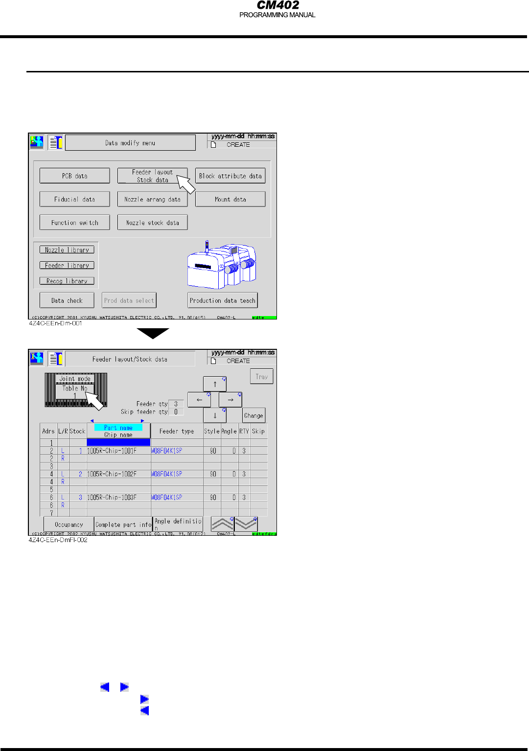 • 顯示 <feeder layout / Stock data> 畫面