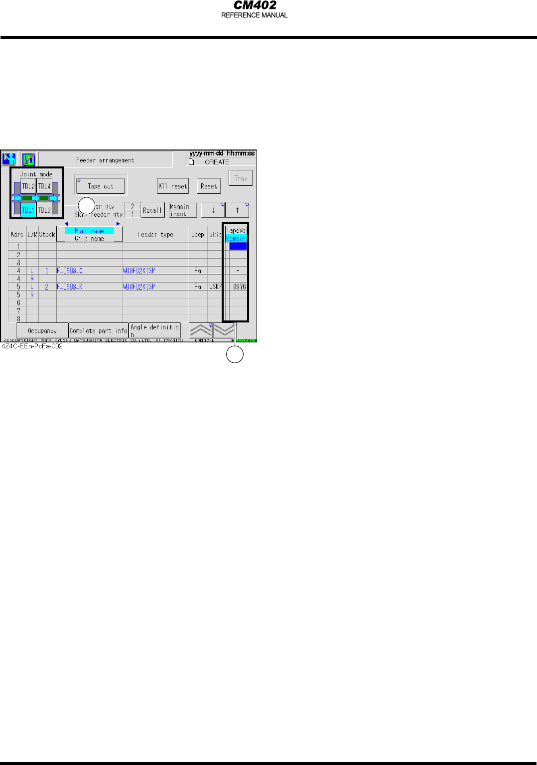 重置目前游標所在料站的剩餘零件數量,料捲頂部的重置目前游標所在料站的剩餘零件數量,料捲