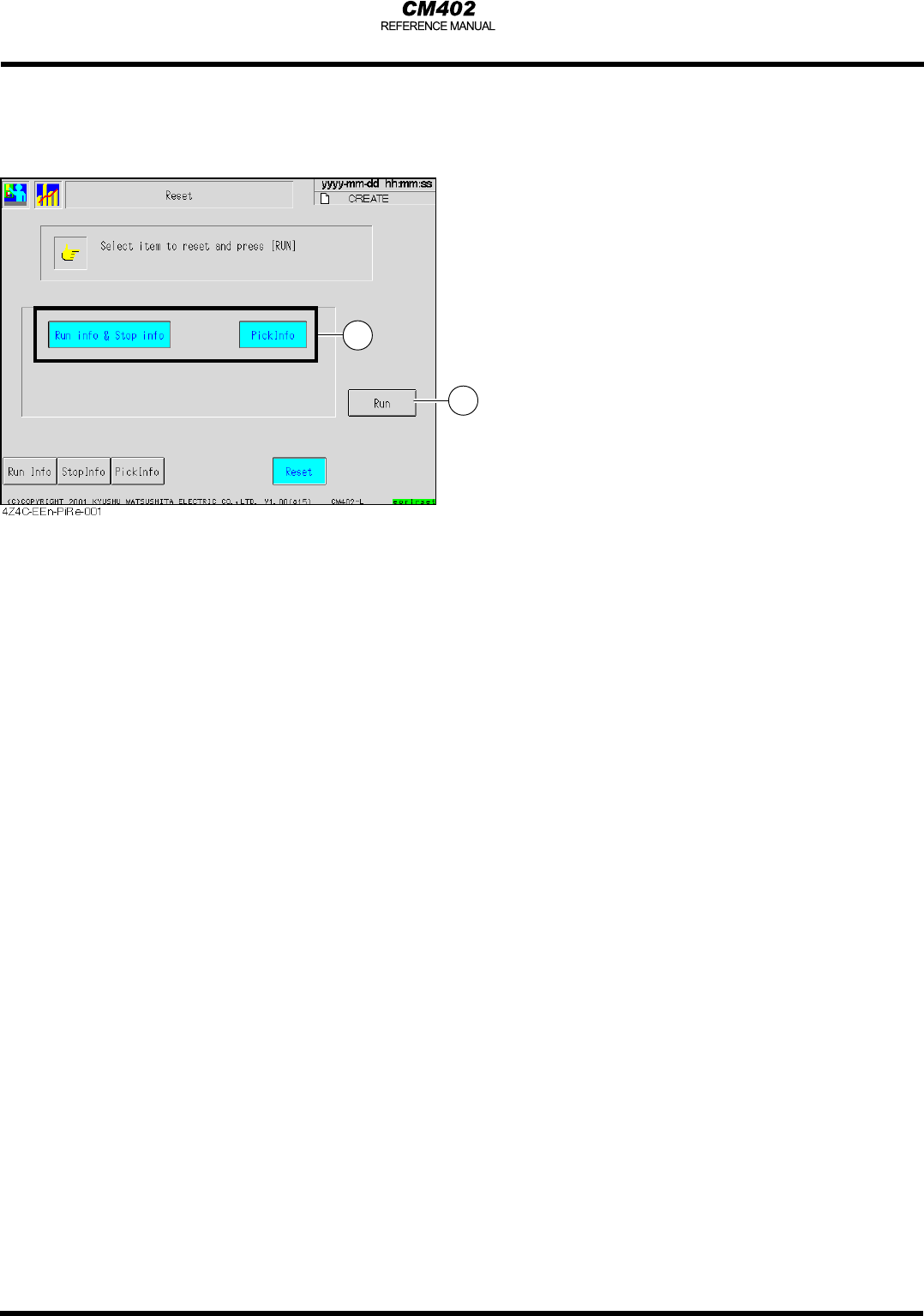 3.3 生產資訊 3.3.3 Reset ( 重置復原) 用來重置復原生產資訊。 1. 選擇要重置的資訊 1 2 可以同時選擇超過一個資訊。 要取消選擇請再次點選該選項按鈕。 2. 點選 [Ru n ] 當確認訊息出現時,請選[Yes]。 P a ge 3 -14