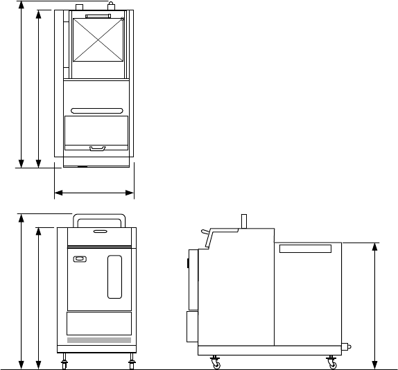 交换台车时,是必须的最小限空间。设置机器时请必须确保以下的空间。