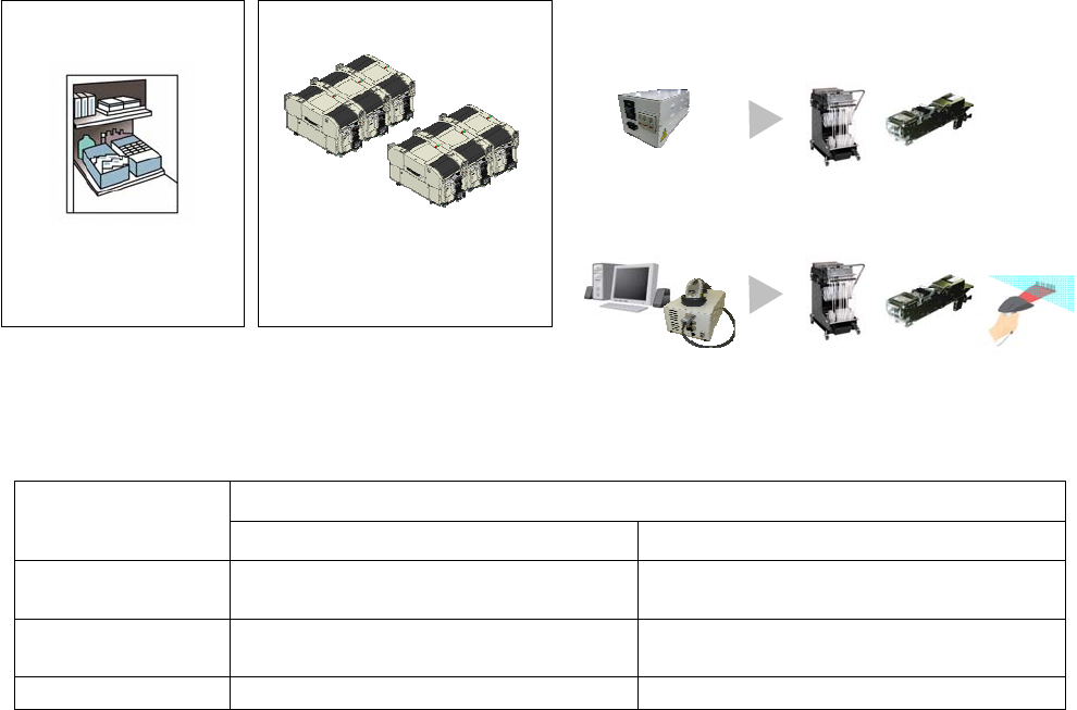 NPM-TT2 2019.1015 - 53 - 5.6 支援站 使用客户持有的预备交换台车和料架 ,在生产中可以进行下一机种的准备,大幅度减少机种切换 的损失时间。 类型有对交換台車和料架供给电源, 和供给电源并且可以进行元件校对的 2 种。 ※ 使用料架自由配置功能时,需要 元件校对类型。 功能类型 可以从电源供给、元件校对的 2 种类型中选择。 ①电源供给类型 : 对交换台车和料架供给电源。 ②元件校对类型 : 对交换台车和料架可…