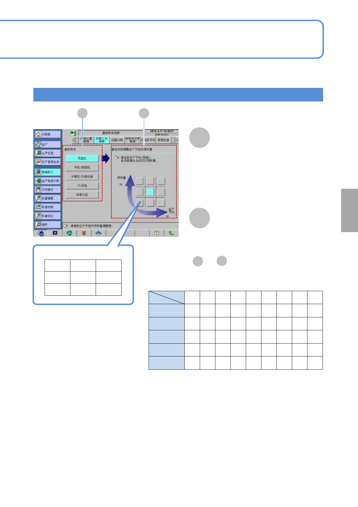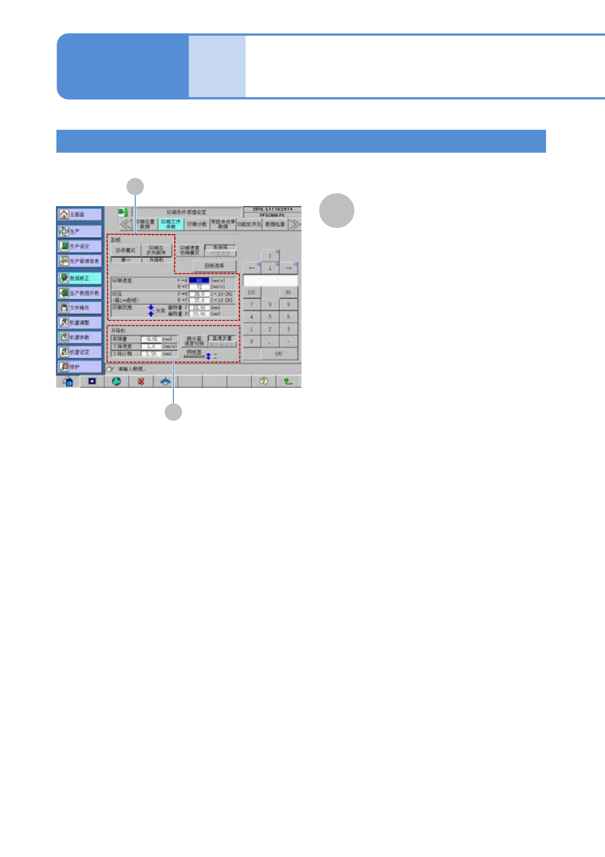 的印刷速度、印压、下降速度、清扫数据