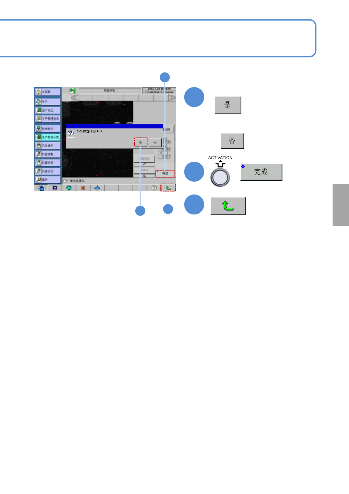 SPG EJP6AC-MB-0 4OM-02 17 18 19 ( 返回「生产数据校正」画面 ) ( 校正数据被保存 ) ■不需要保存时 确认提示 + 19 18 4-2-5 -4 数 据 编 辑 17