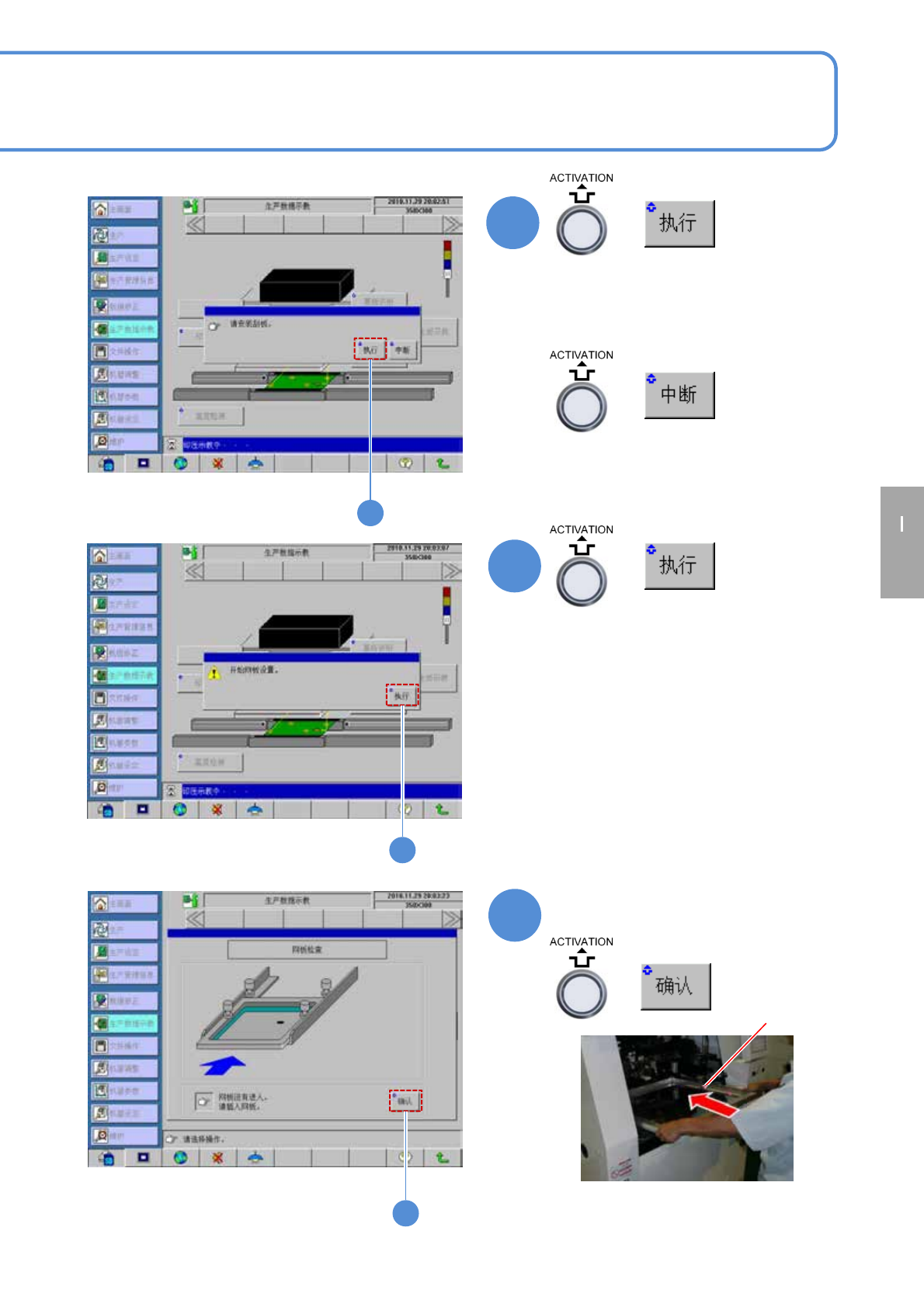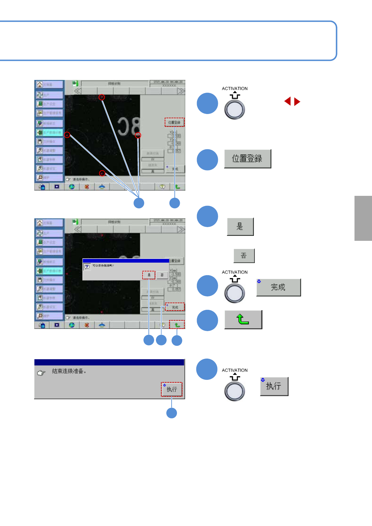 SPG EJP6AC-MB-0 4OM-02 4-2-7 -1 生产数据 校正 印压示教 1 操作編 4-2-7 ■变更所使用的刮刀之际,请务必实 施印压示教。 只要实施过印压示教,将会保存这个 印压数据。选择了这个印压 数据,即无需在之后执行印压示 教。 1 1 2 2 + ■无需开始印压示教时 开始印压示教。