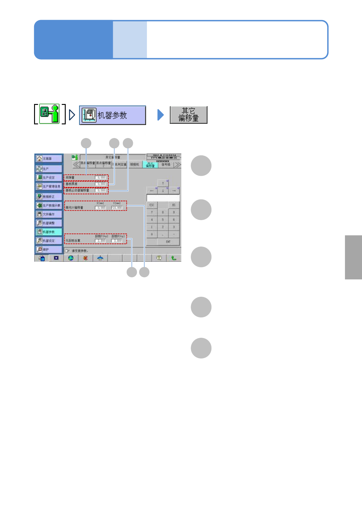 显示间隙、基板厚度、挡块、基板传入 (传出) 位置的偏移值。