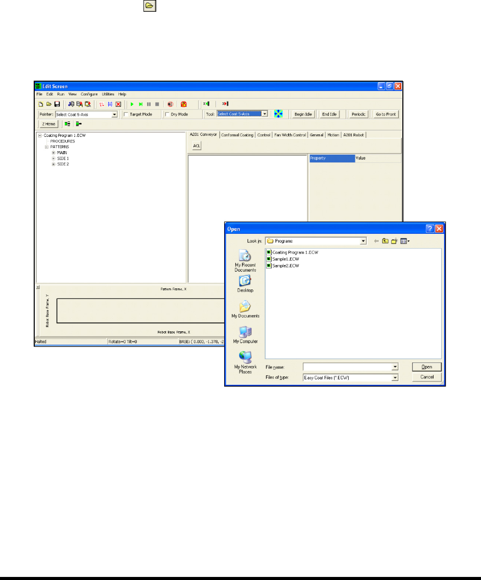 Operation 5- 23 5.17 Loading a P rogram Programs can be loaded from both the ECXP Operato r Screen ( Fig ur e 5-16) and the ECXP Edit Screen ( Fi gur e 5-17). Following ar e detailed instruction s on loading a pr ogram f…