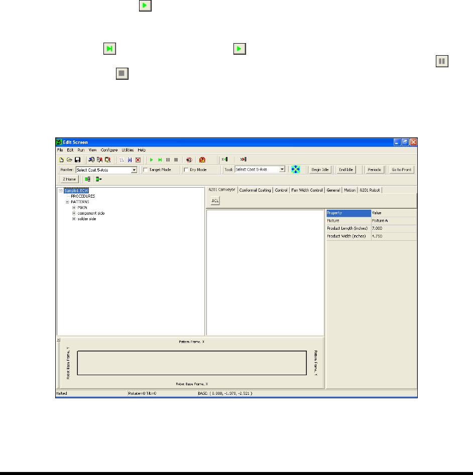 5- 26 Operation To run a pr ogra m from th e Opera tor Scre en (SL -941E): 1. Load the program you want to run as described in 5.1 7 Loading a Program . 2. Load a new product (board or carrier) into the fixture. 3. Click…