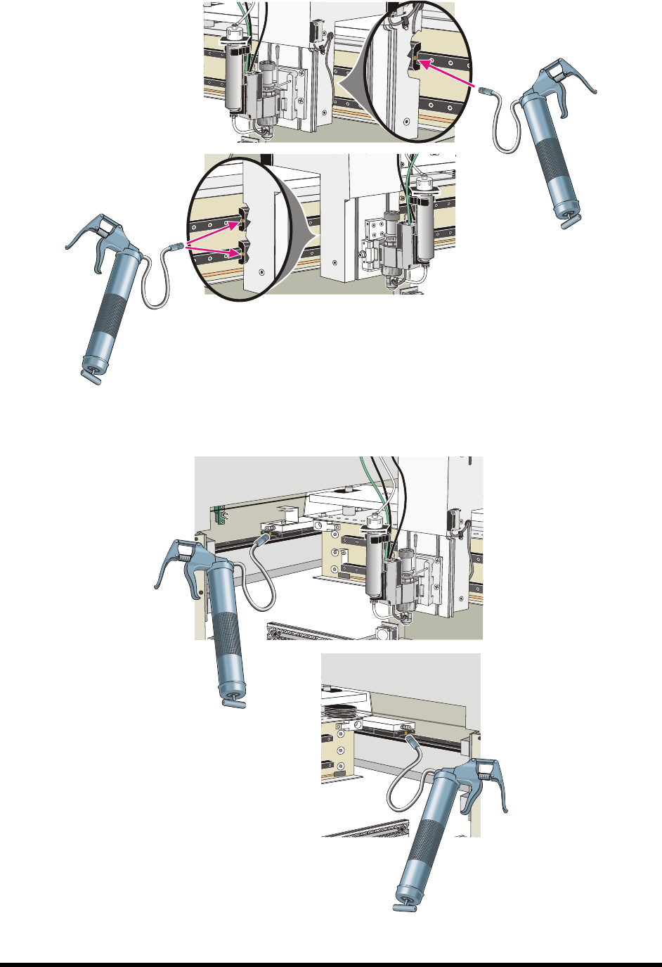 Figure 7-9 Lubricating Y-Axis Linear Guides (rear Y-bearings not shown)