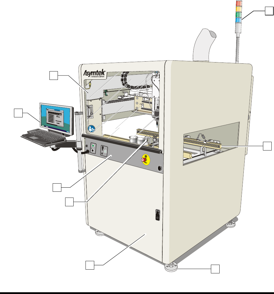 1- 10 Introduction 1.12 S y stem Features The fig ures in this secti on show view s and fea tures o f the coati ng sy stem . Callouts locate m ajor components, opt ions, and switches. The numbers asso ciated with the des…