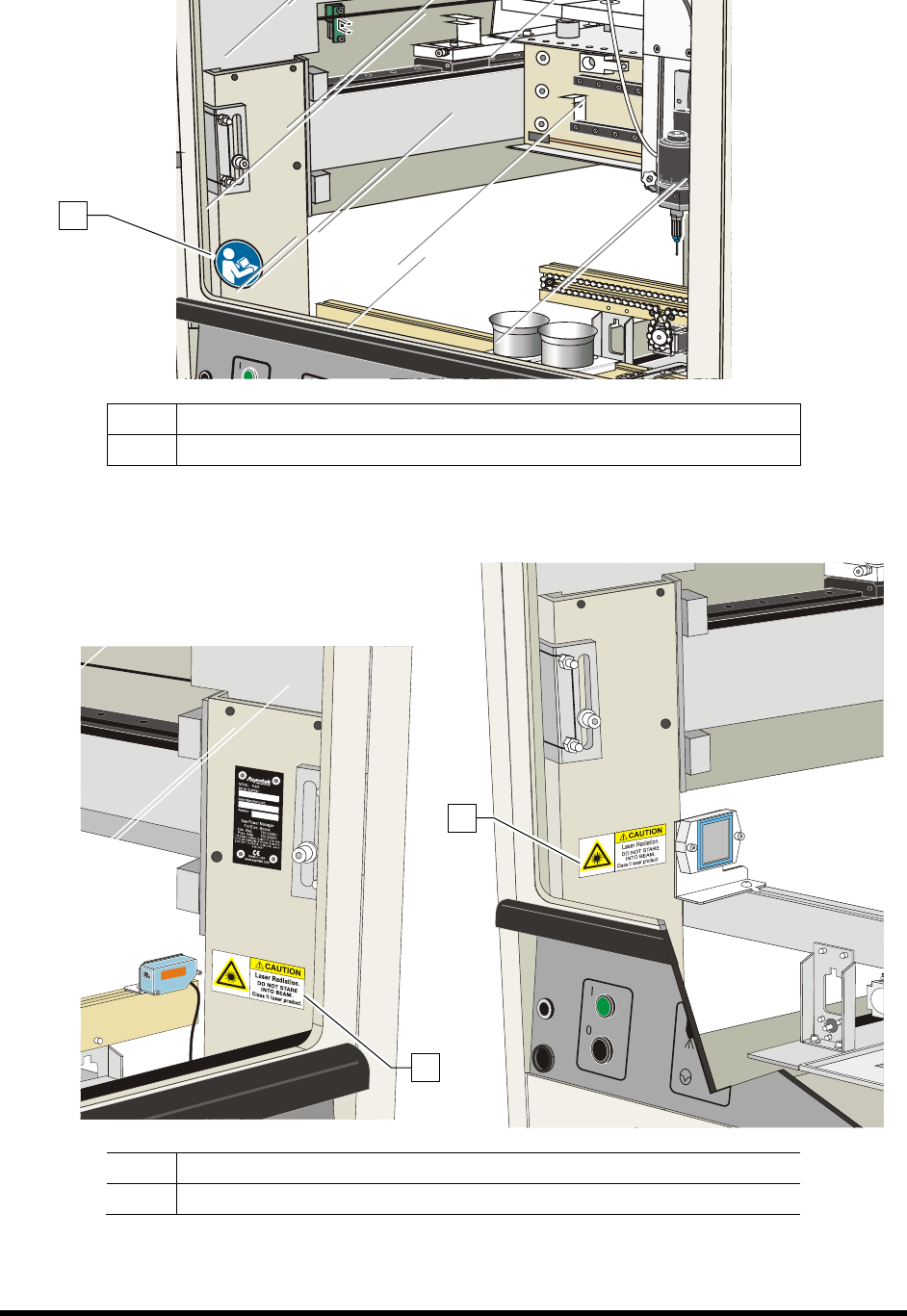 2-8 Safety Item Descripti on 1 Moving P arts Pres ent Figure 2-3 Safety War ning Labels - Conv eyor Item Descripti on 1 Hand Entan g lement L abels 2 Hot Surf ace Lab el Figure 2-4 Safety War ning Labels , Rear V iew 1 1…