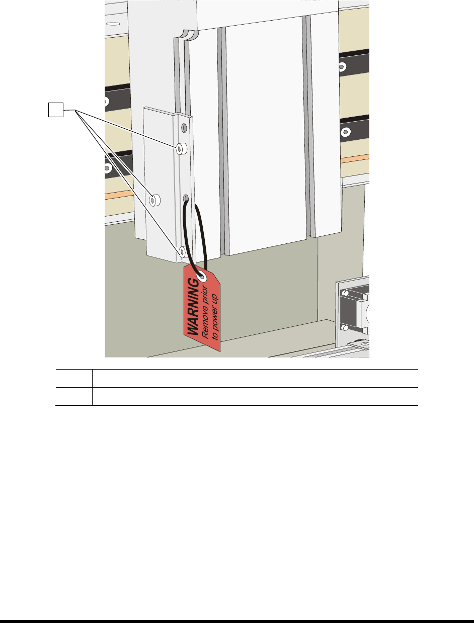 Insta llat ion 3-5 4. Rem ove the sh ipp ing brack et and warn ing tag attac hed to t he Z - Head by loosenin g the screws. See Figur e 3-4. Retain bracket and ha rdware for fu ture shipp ing purposes. Item Descripti o…