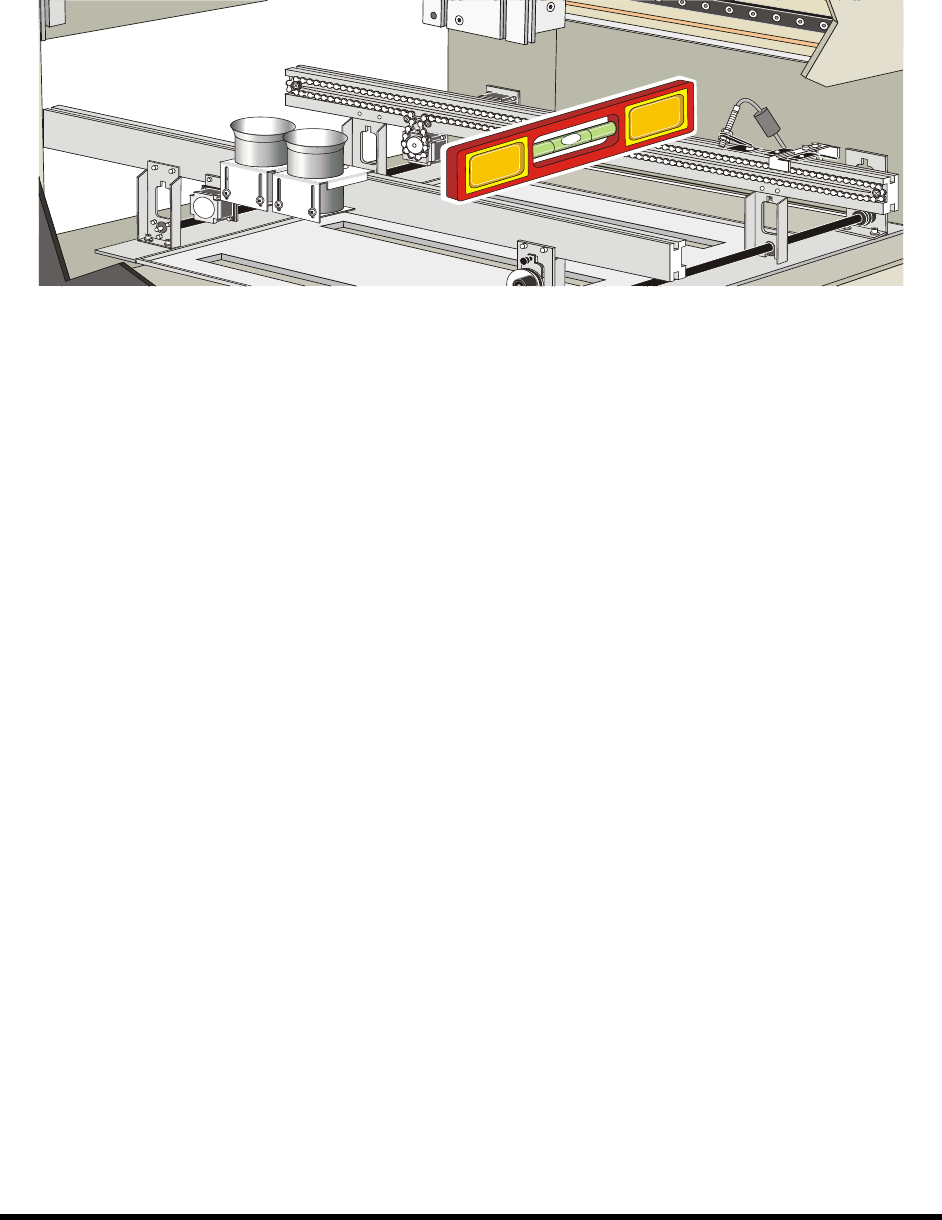 Insta llat ion 3-7 4. Place the box l evel between the fron t and r ear conv eyor rai ls along t he Y-axis ( Fi gur e 3-7 ). 5. Observe th e po sition of the bubble within the level’s wi ndow. The bubble should be cent…