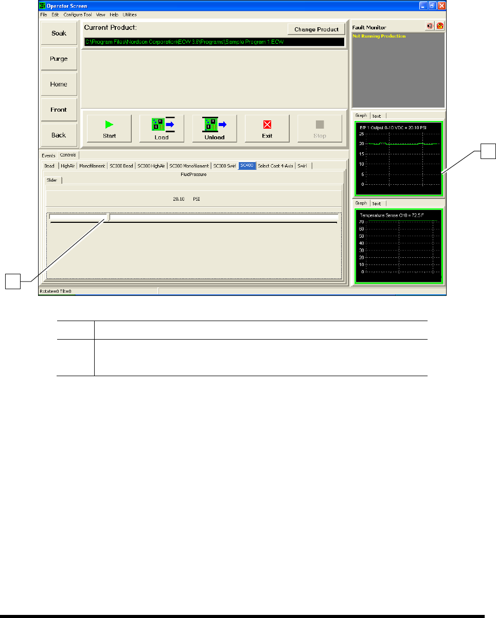 The ECXP Operator Screen displays a fluid pressure monitor that the operator can view during