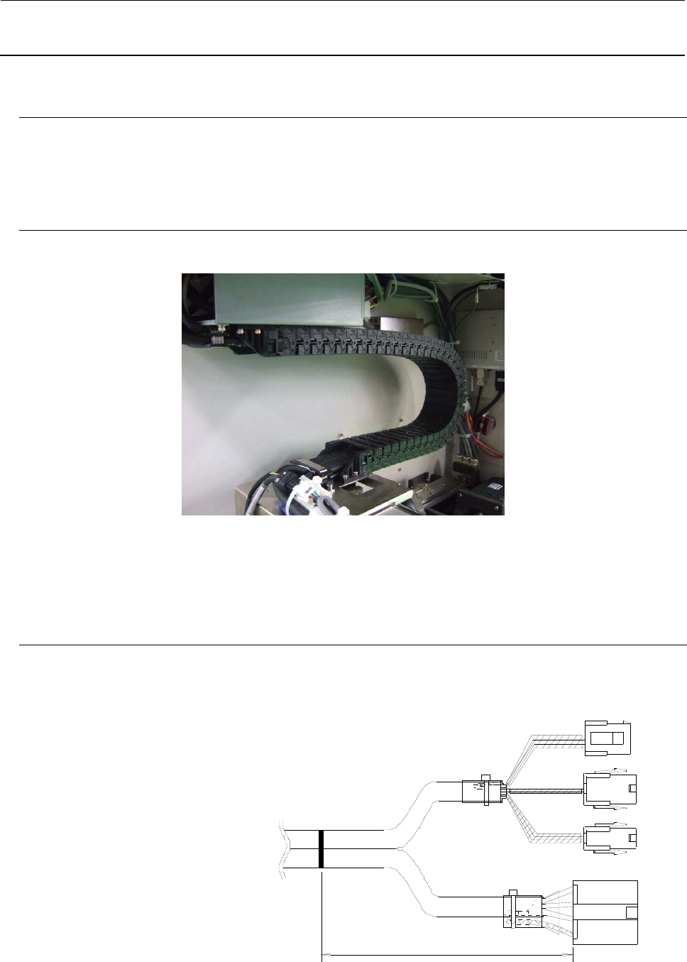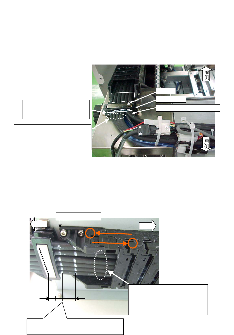Rev. 1.1 维修调整要领书 1-19 1-5-7 . 电缆支座的装配 1) 在 XY BEAR CABLE ASM ( 40076787 ) 、Y BEAR CABLE ASM ( 40076795)、OPTICAL FIBER CABLE 7M ( 40044543 ) 、1394 机器人电缆( 40044517 )各电缆纳入塑料导轨的部分涂敷润滑 油。 ※ 润滑油:货号 MGREAS400GA GERALYN #2 2) 配置…