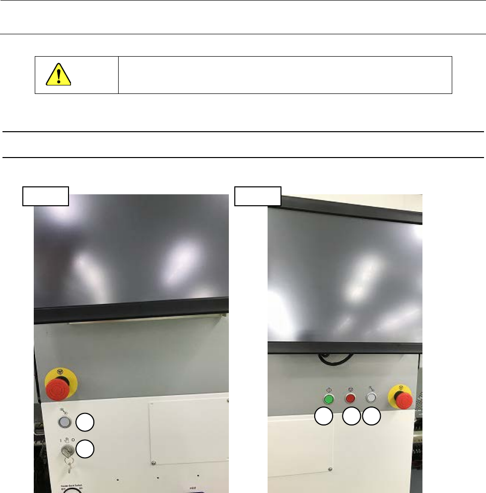 维修调整要领书 危险 为防止因意外起动导致事故,请切断电源后,再进行操作 。 10 开关类 10 - 1 按钮开关 的 更换 按钮开关的交换 ① 开始开关 ② 停止开关 ③ 切换前后操作开关 ( 装有背面操作装置时 ) ④ 钥匙开关 前侧 3 1 2 3 4 后侧 10 -1