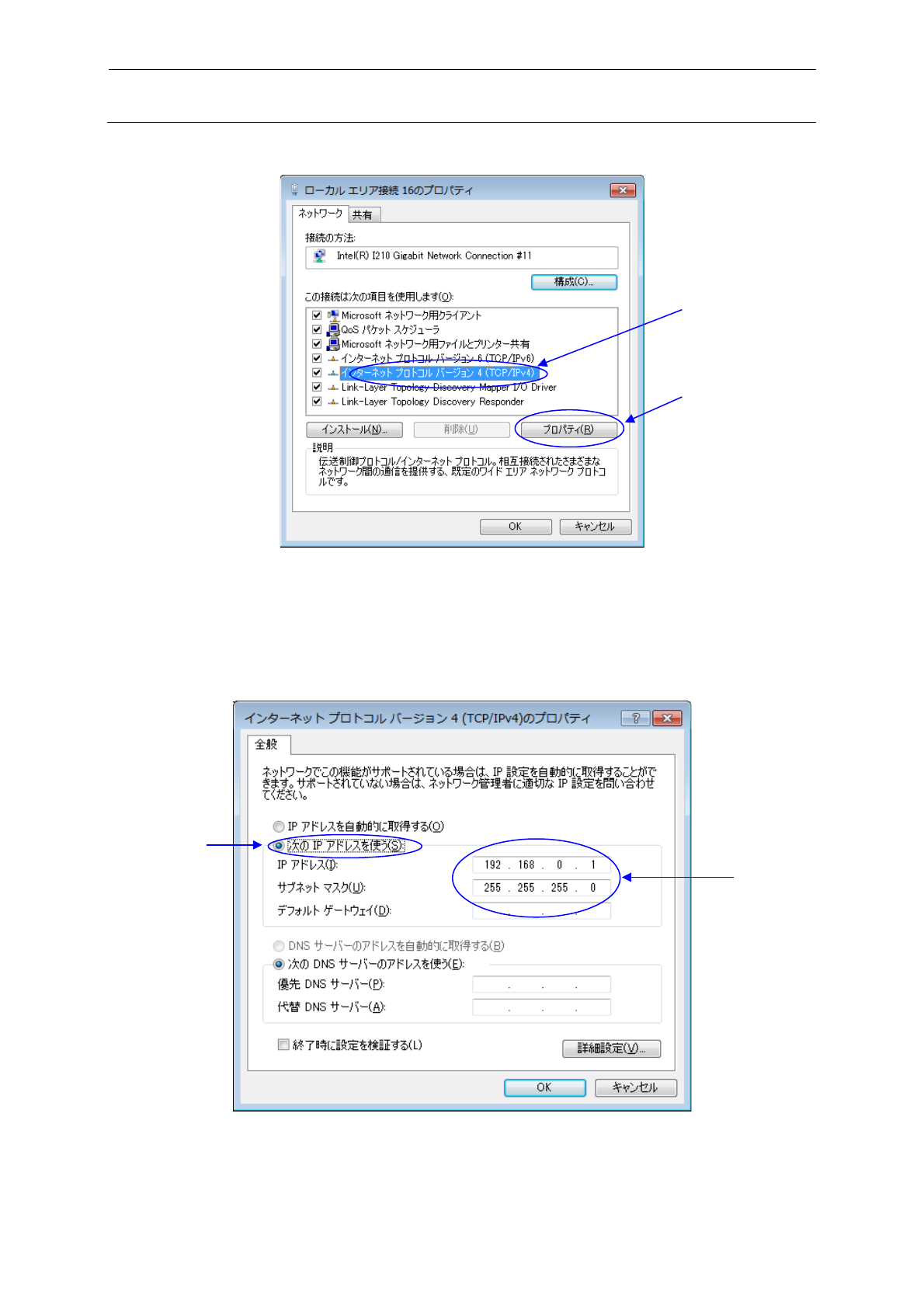 6) 请指定①[互联网协议版本 4(TCP/IPv4)],选择②[属性]。