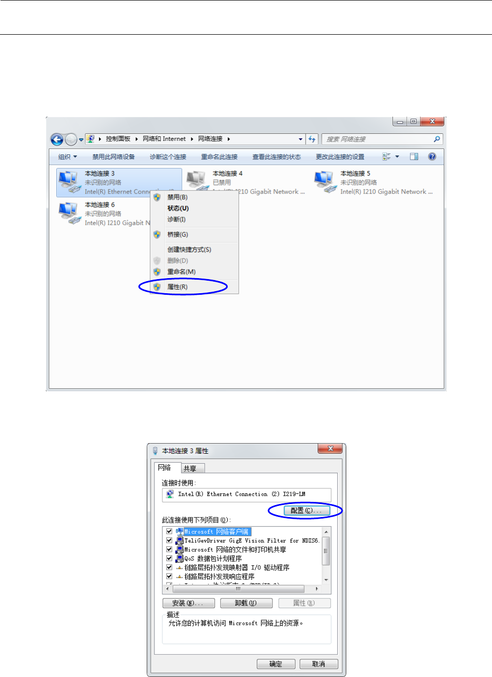 将出现 4 个“本地连接”图标,于是按照以下操作顺序,寻找用于与 3D 传感器通信的设备。