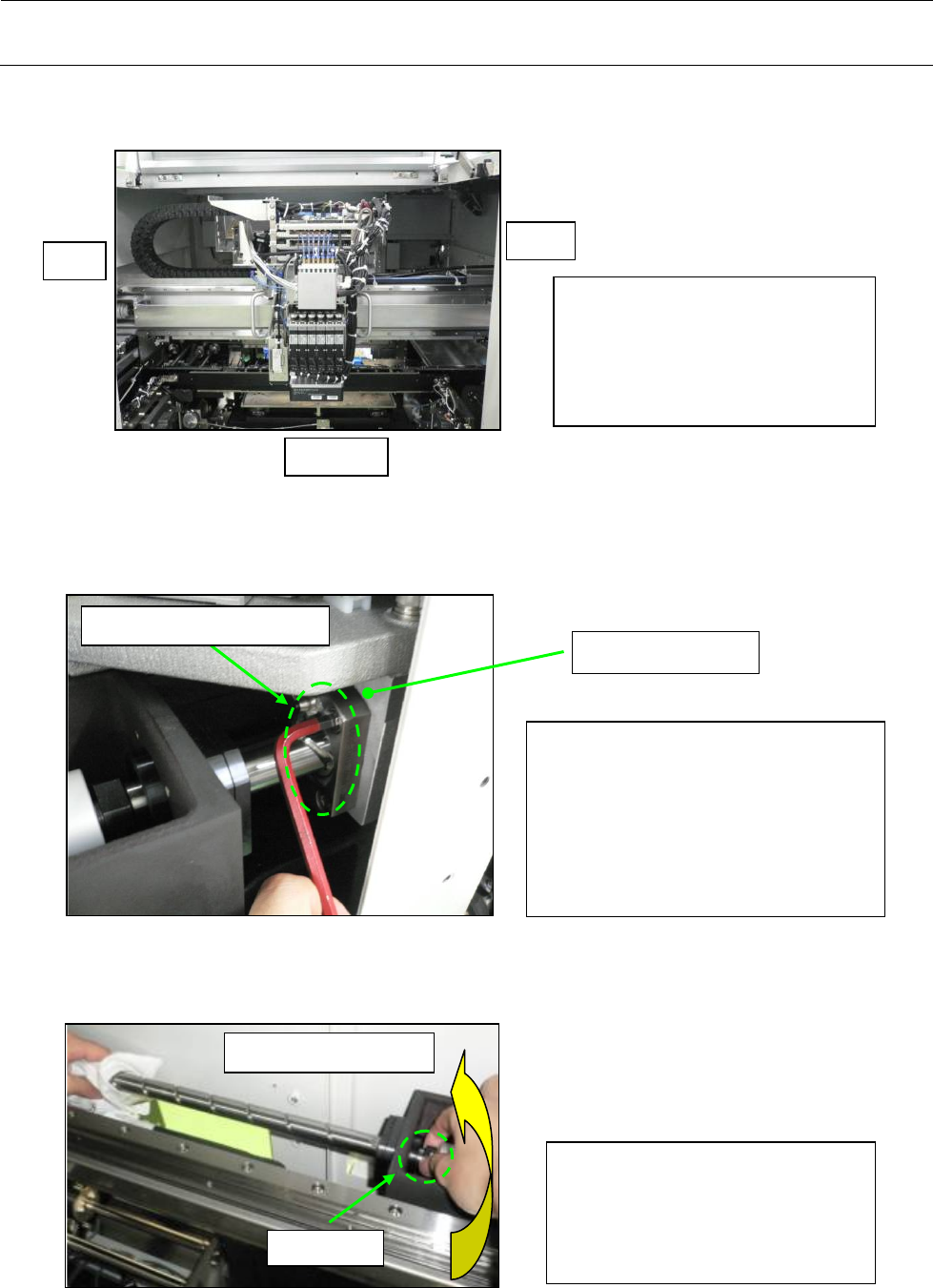 维修调整要领书 ( 6 ) 卸下 Y 滚珠螺杆螺母的固定螺丝 ( 7 ) 卸下前侧的锁紧螺母和间隔圈 拆下 SM60602002TN 4 个。 操作前应把 HEAD_UNI T 移到前侧。 要更换 R 侧的滚珠螺杆时, 应将 HEAD_UNI T 向 L 侧靠。 要更换 L 侧的滚珠螺杆时, 应将 HEAD_UNI T 向 R 侧靠。 拆下 SM60602002T N 4 个。 拆下 SM60602002T N 后, 应使 HEAD_U…