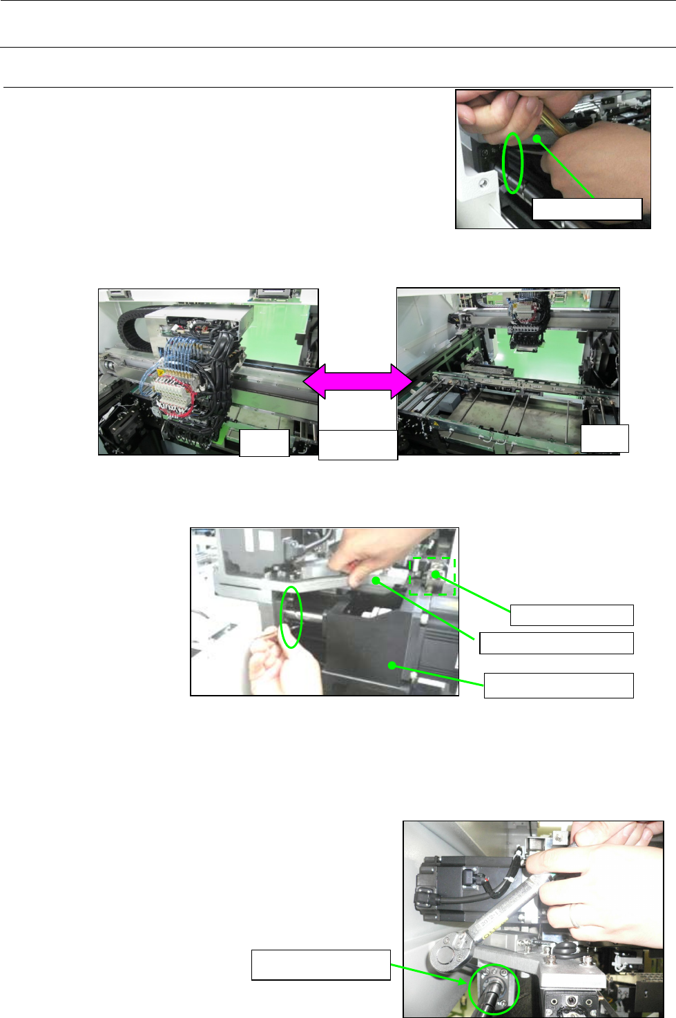 维修调整要领书 1-7- 4 Y 滚珠螺杆的调整 ( 1 )将 X_AXIS_FRAM E_ASM 向前侧靠,靠到扳手刚 好伸得进为止,进一步旋紧装置内侧的 螺丝 ( SM6062002T N ) 2 个。 ( 2 )来回几次移动 HE AD_UNIT ,使 X_AXIS_FRAM E_ASM 从前侧 Y_ST OPPER 移动至触碰后侧 Y_ STOPPER ,检查移动是否阻滞。移动阻滞时,回到 1-7-4 ( 1 )从新调整。 ( …