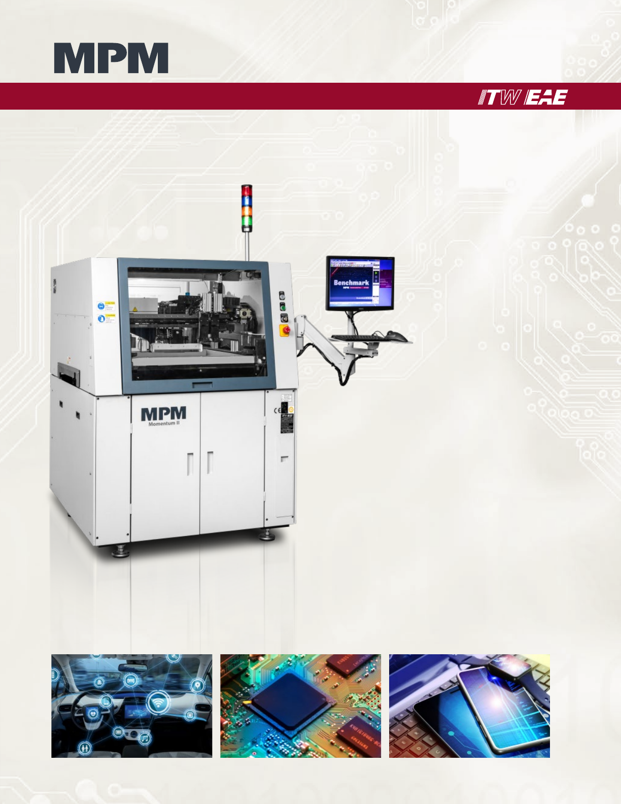Elec tronic Assembly Equipment 一个物超所值高性能的印刷解决方案 , 旨在满足大批 量生产的需求 。 Momentum II 的新外观 和创新的新功能进一步提 高质量 , 产量 , 生产力 , 易用性和灵活性 。 Momentum® II 100 印刷系统