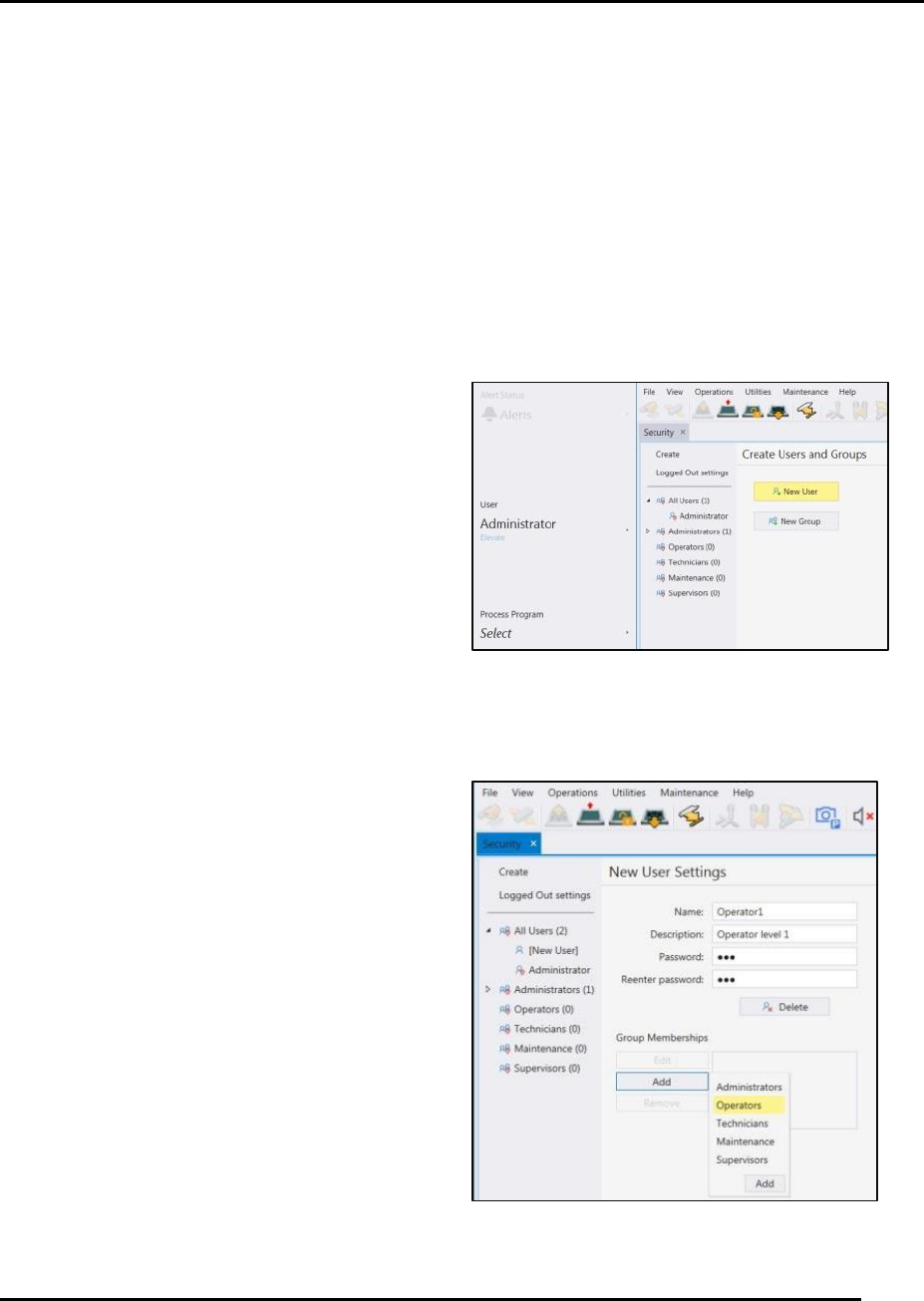 Create new users, create a new group or elevate privileges for existing users. Set each security